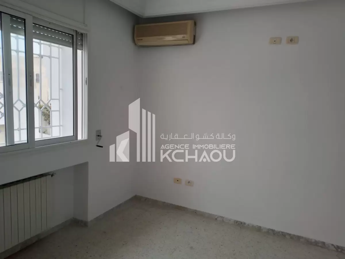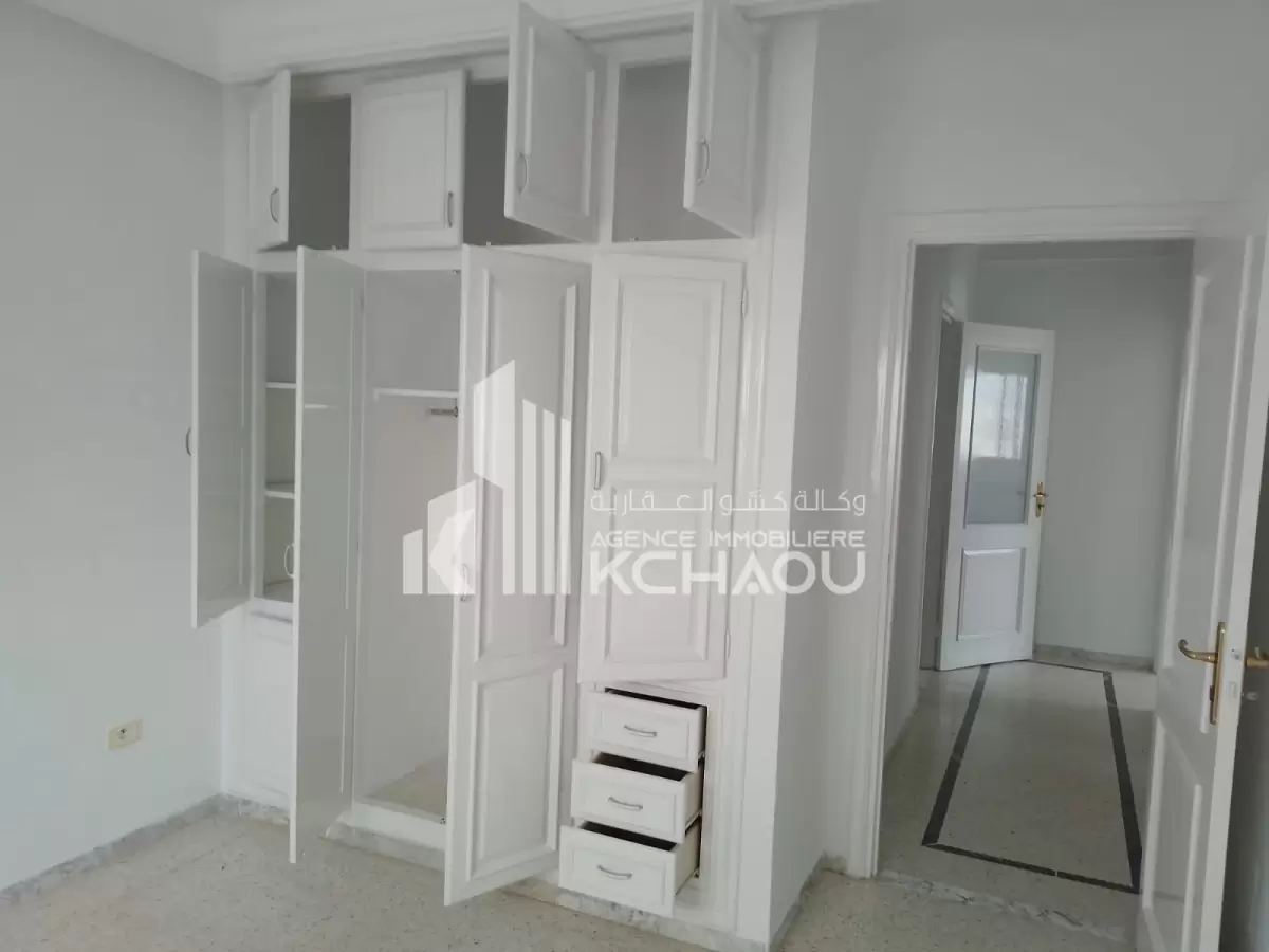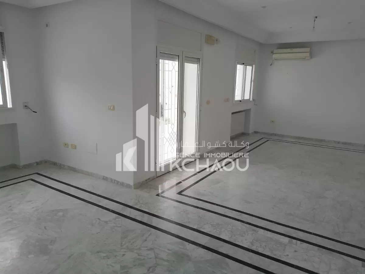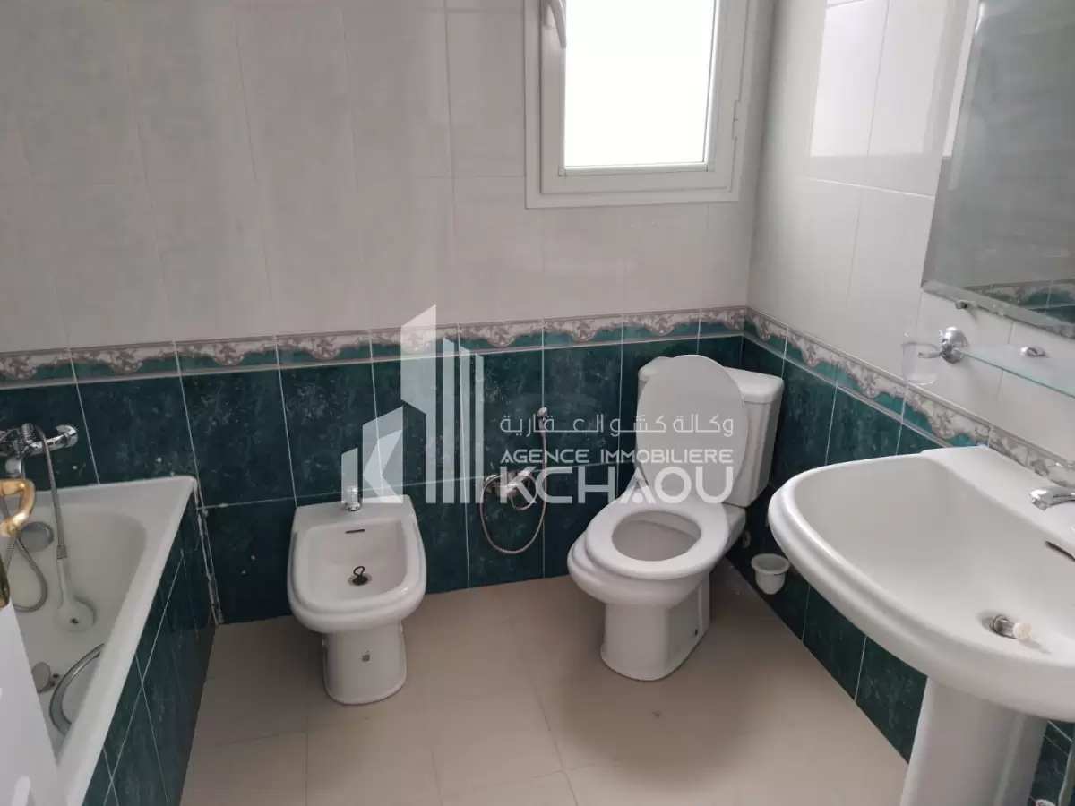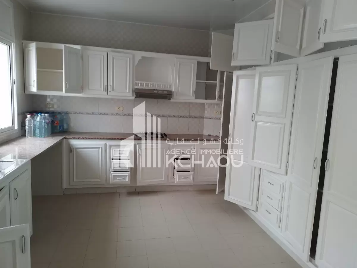 Agence immobilière KCHAOU met a la location un étage de villa s+3 disponible à partir du 1er novembre 2025 composé de : grand salon/salle à manger, 3 chambres à coucher dont une suite parentale avec dressing, cuisine (placards, plaque et hotte aspirante), 1sdb, 1 salle d'eau, véranda avec vue panoramique, abri voiture, jardin indépendant, porte extérieure automatique et interphone avec caméra. Pour plus d’informations veuillez contacter Agence immobilière KCHAOU au 55 523 500