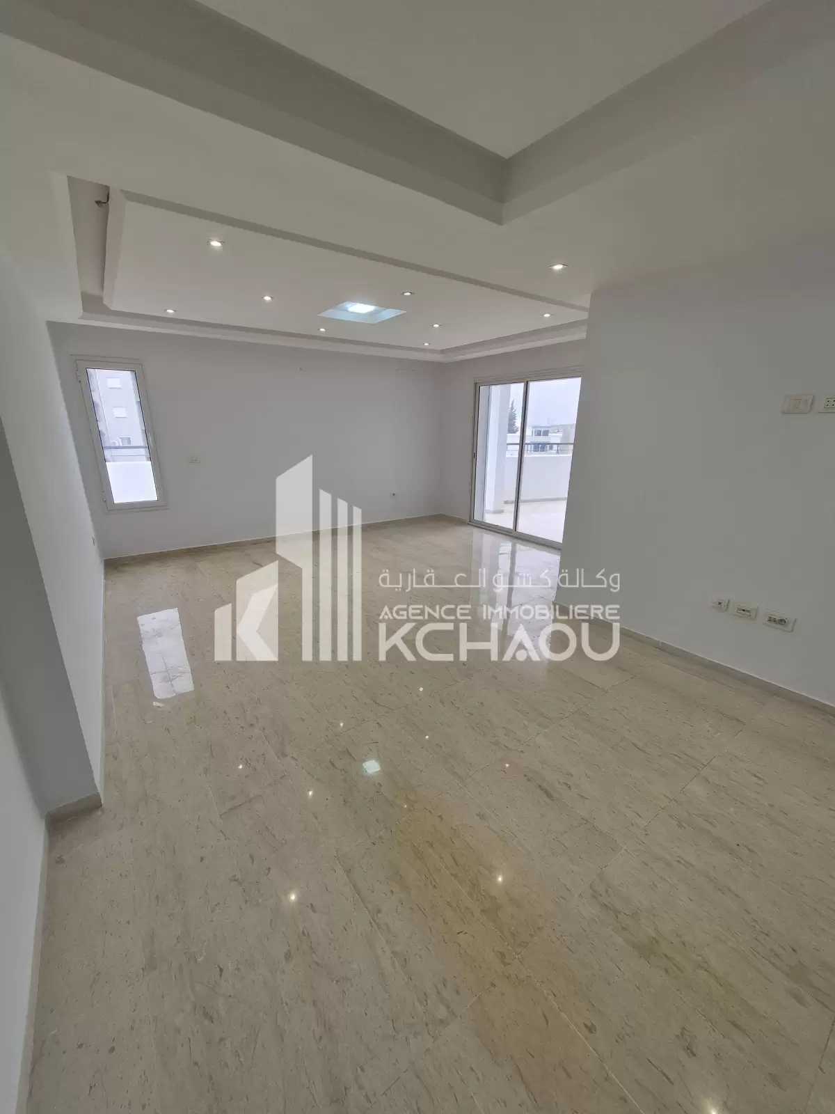 Agence immobilière KCHAOU vous propose à la vente un magnifique appartement S2 tres haut standing, situé au 2eme etage avec ascenseur d une résidence calme, sécurisée et idéalement placée a Mnihla . Composition : Un salon lumineux ouvrant sur une terrasse ,deux chambres a coucher Une salle de douche ,Une cuisine entièrement équipée avec terrasse , chauffage central. Cet appartement offre confort et modernité et il est situé à proximité de toutes les commodités.