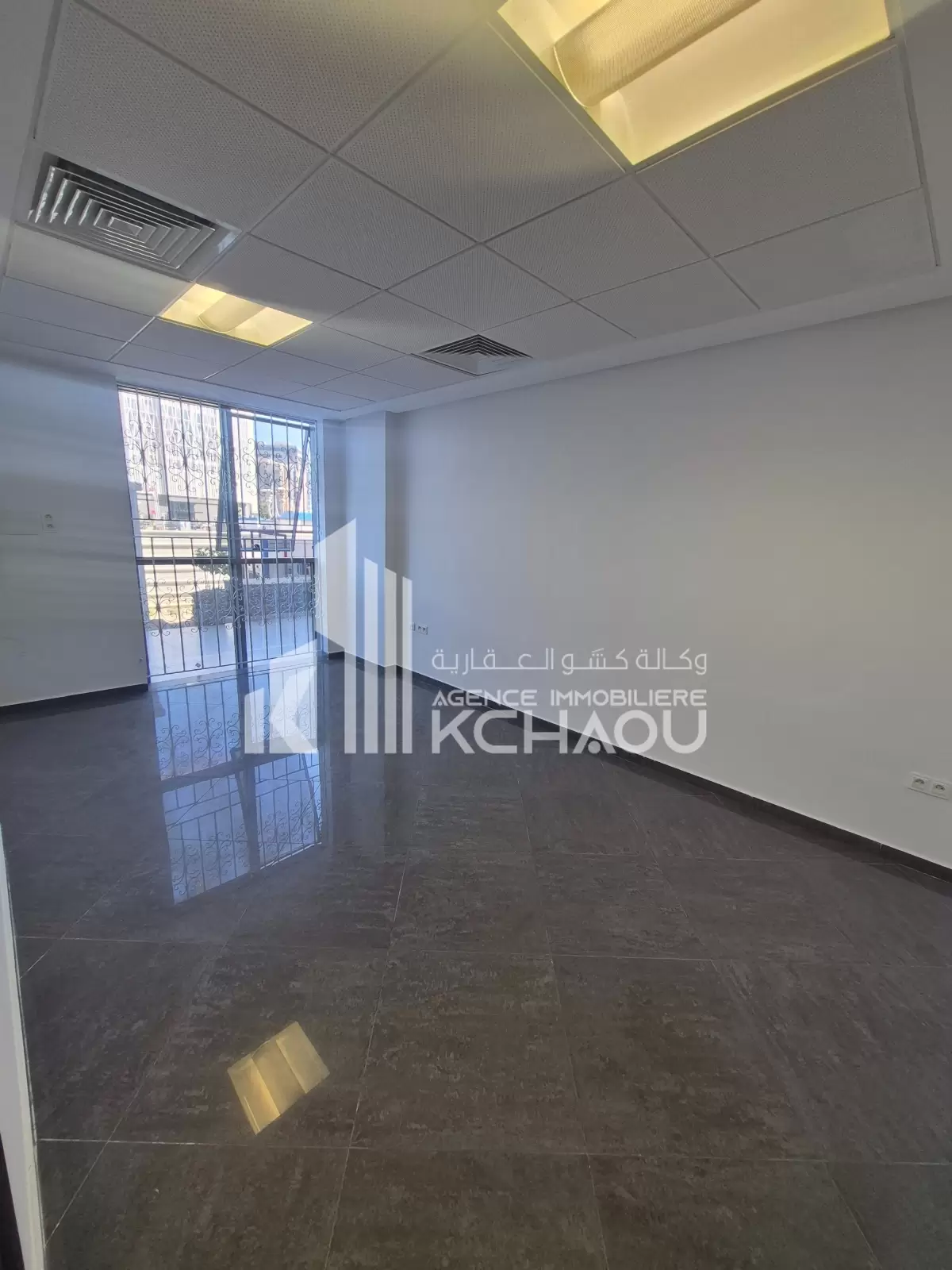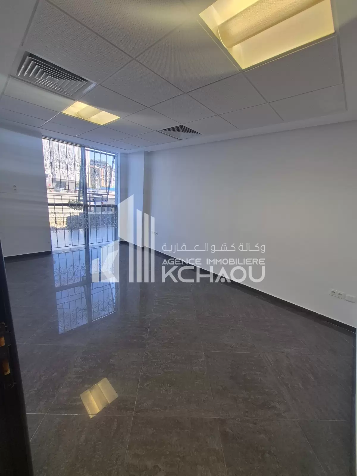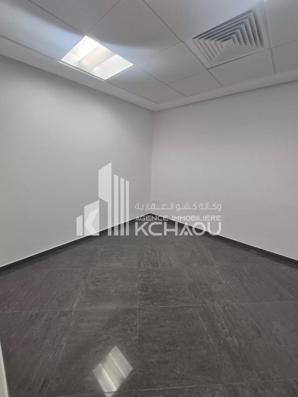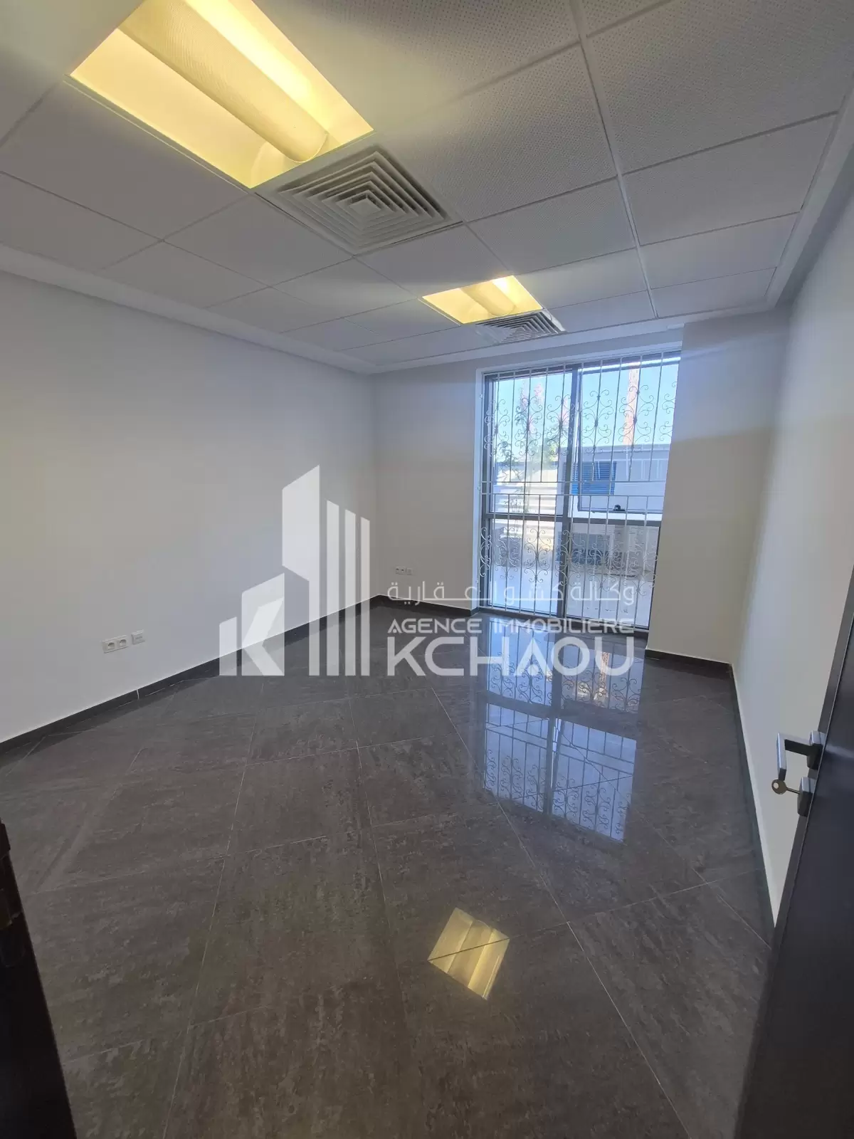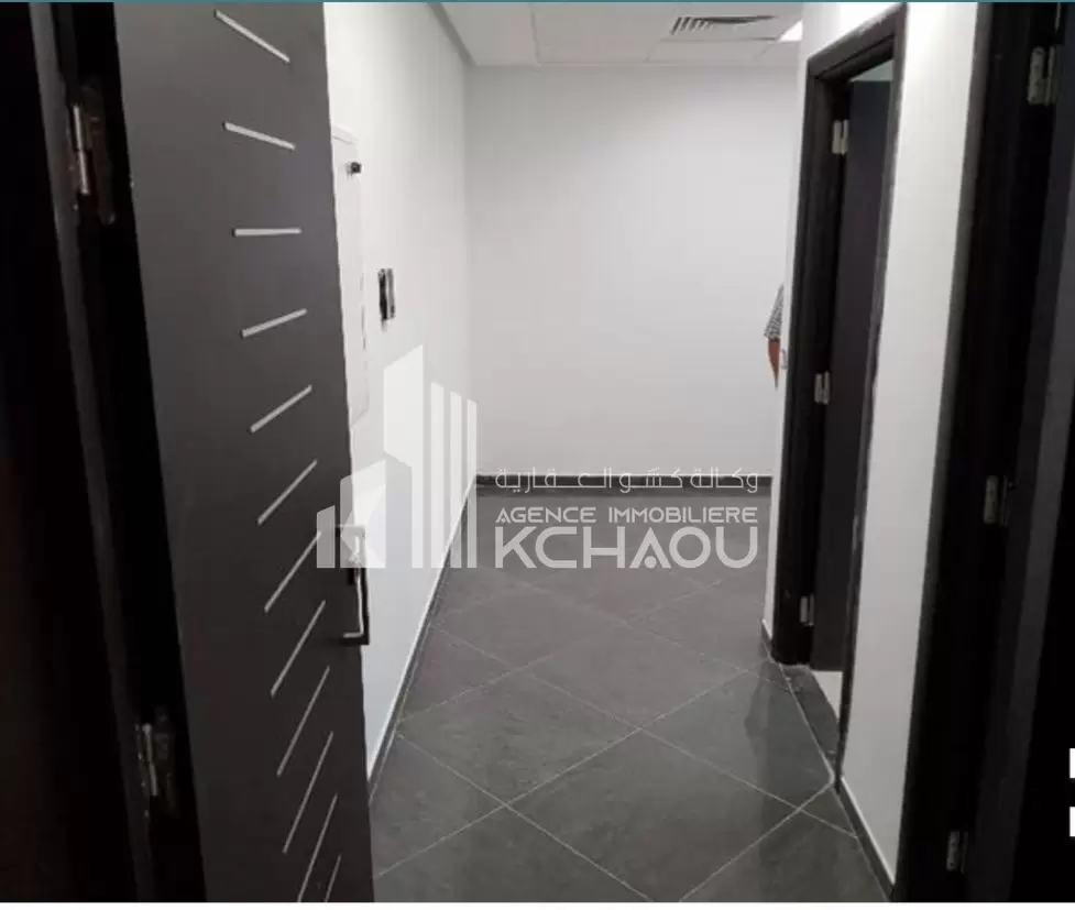 Agence immobilière KCHAOU met à la location un bureau situe au rdc composé de deux grands bureaux une salle d attente un coin archive et disposant de sanitaire, kitchenette et de 2 deux places parking.