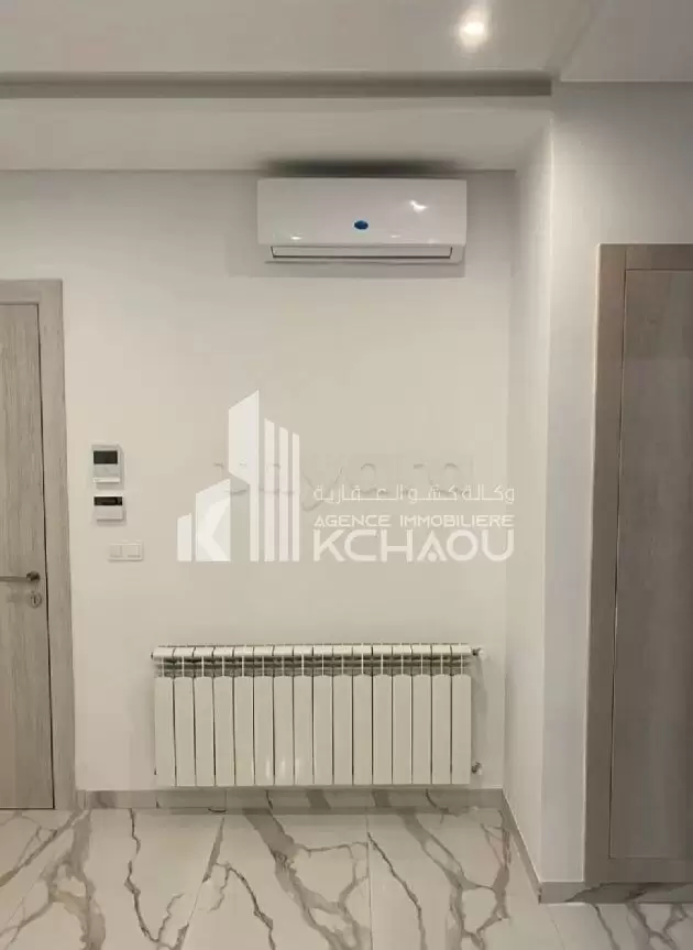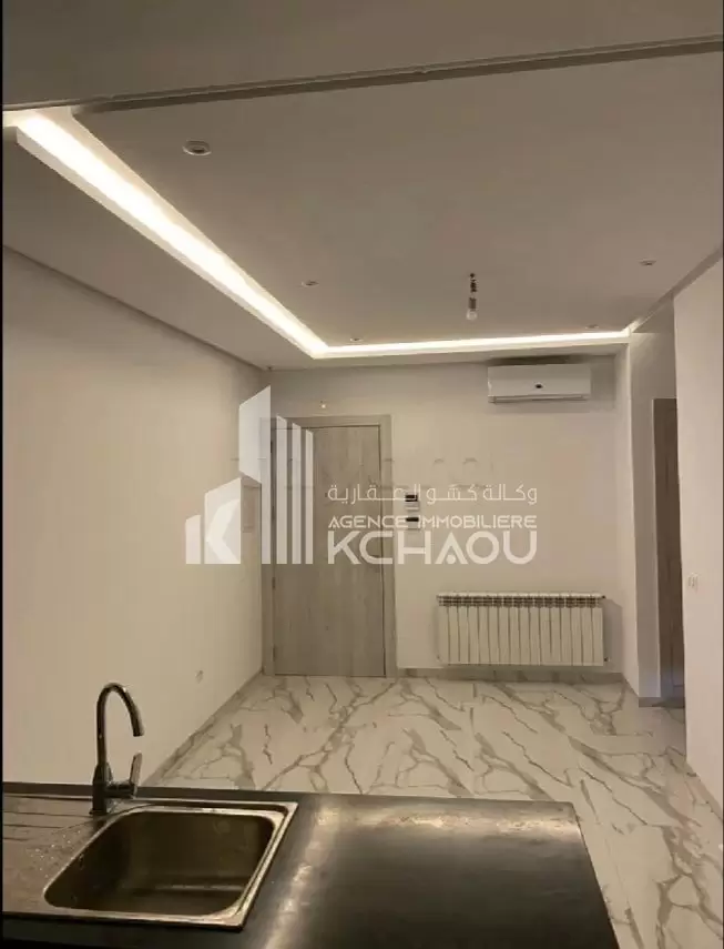 a louer un appartement S+1 dans une résidence gardéee et sécurisée, au 6ème étage avec double ascenseur. Cuisine équipée ( four, gaz, cuisinière), deux climatiseurs Split, un balcon, chauffage central .